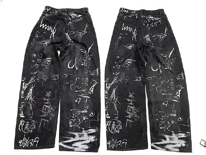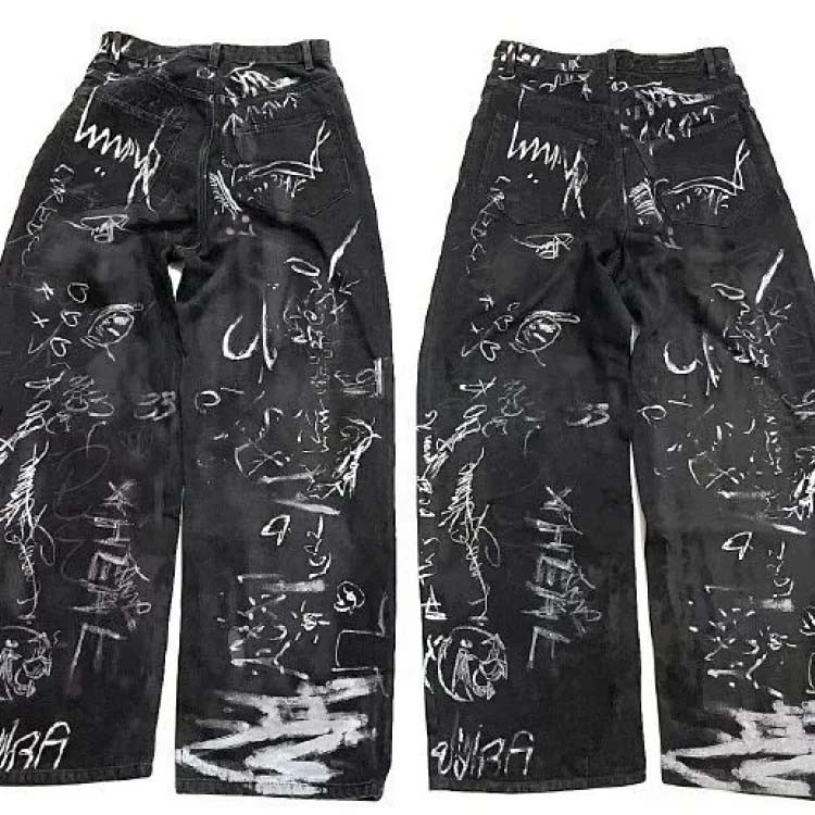 Balenciaga Parisian style hand-painted graffiti washed couple casual denim trousers-2449