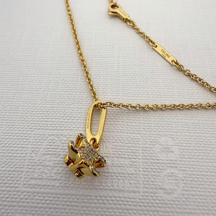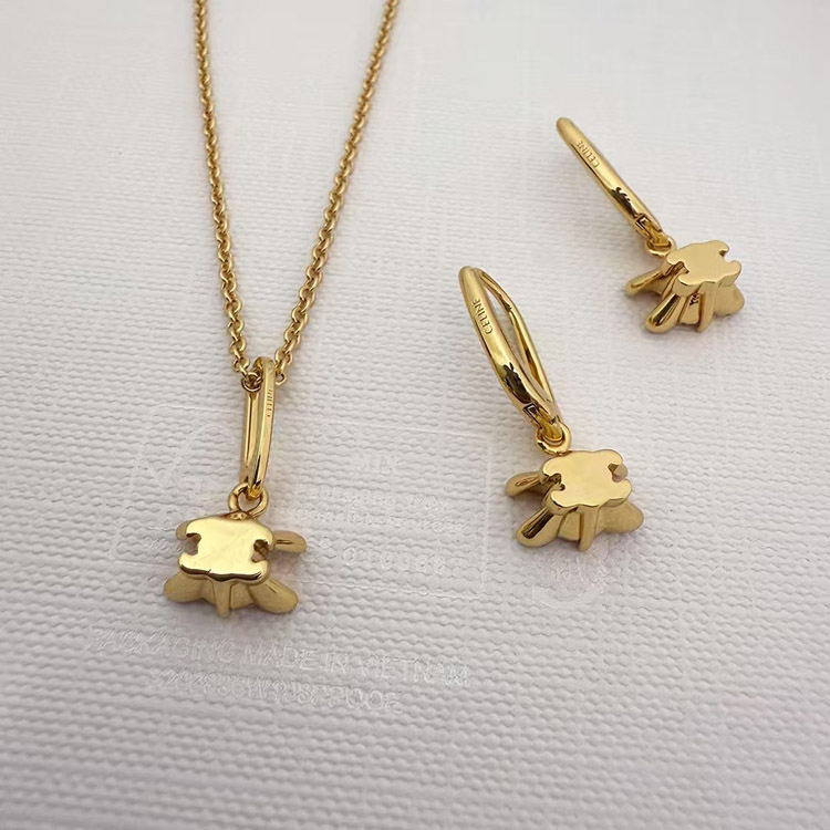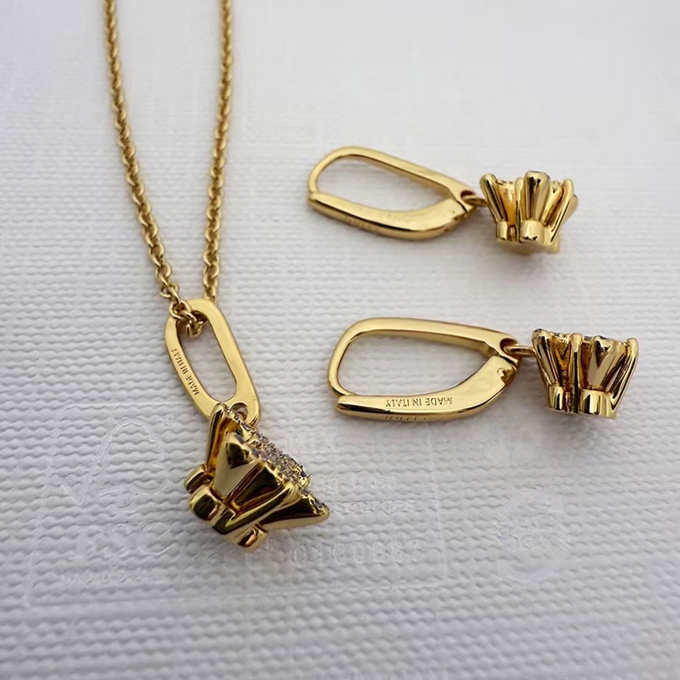 Celine Gold Arc de Triomphe Full Diamond Logo Necklace Earrings-3736