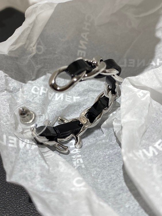 Home > Chanel silver leather hoop earrings-3596