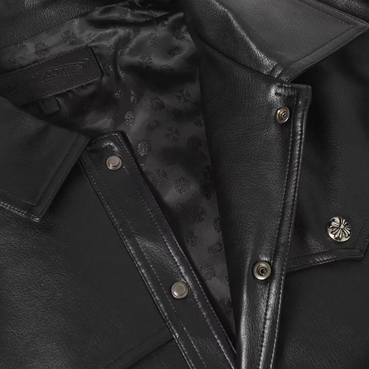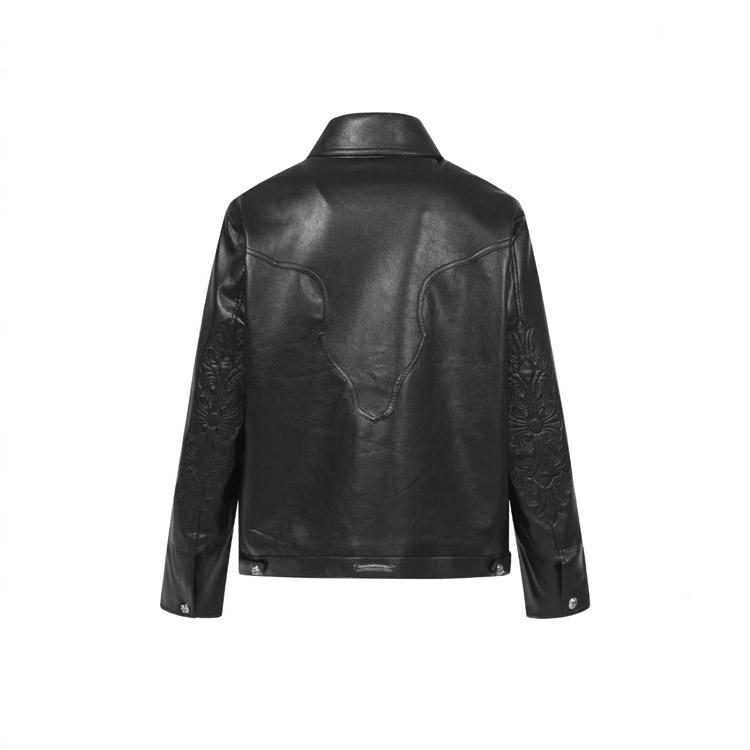 Chrome Hearts CH New Style Leather Jacket with Large Embroidered Arms-5009