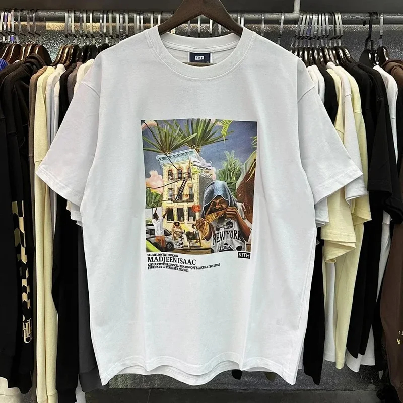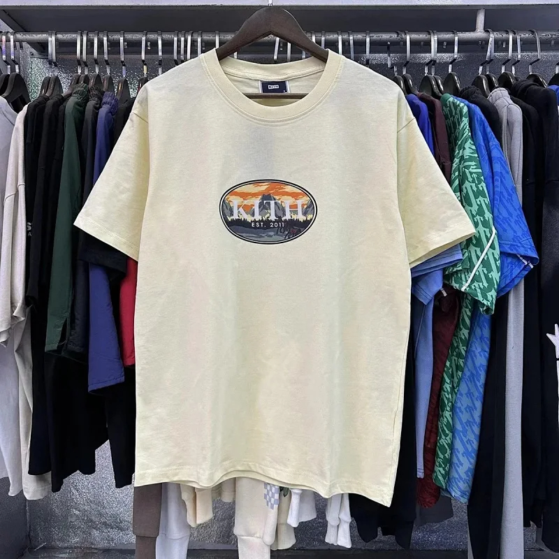 KITH High definition printed double-yarn pure cotton casual short-sleeved T-shirt for men and women-1883