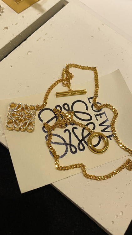 Home > Loewe gold full diamond cube TO buckle necklace-3719