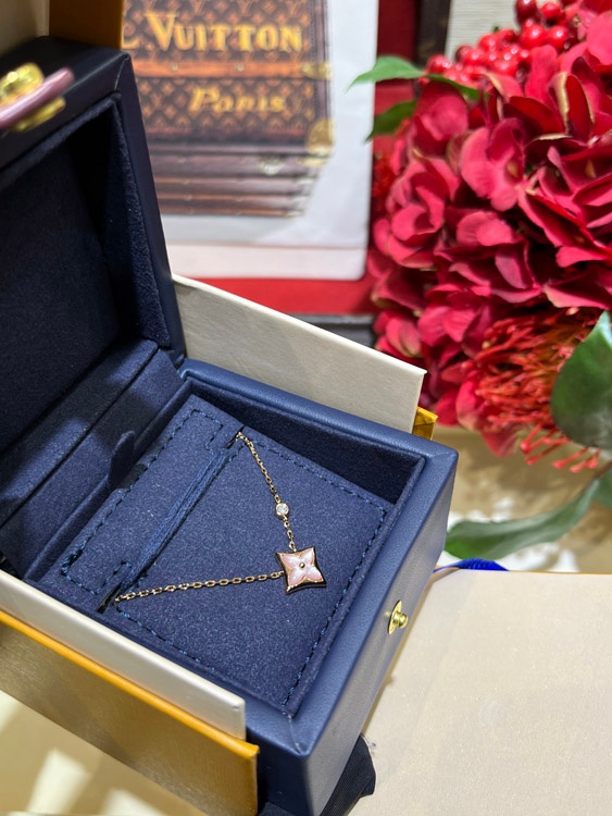 Louis Vuitton LV Pink Mother-of-Pearl Floral Diamond Rose Gold Necklace-3726