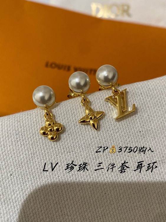 Louis Vuitton LV three-piece earrings with pearl letters-3608