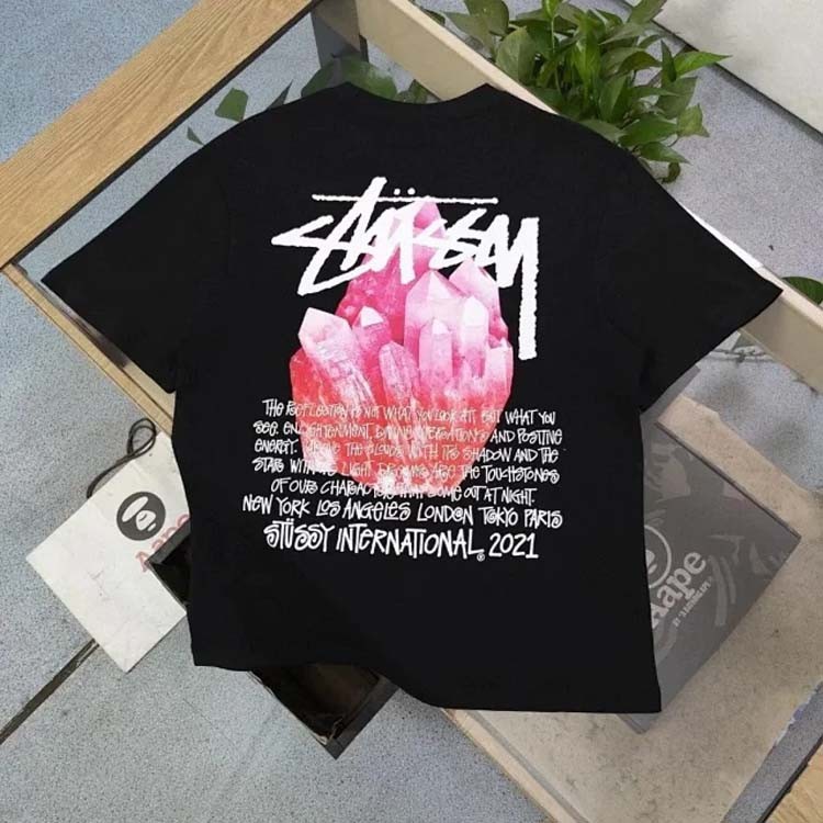 STU pink crystal letter print round neck short sleeve T-shirt(39 styles)-1874