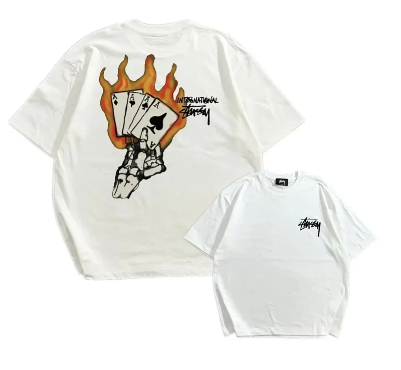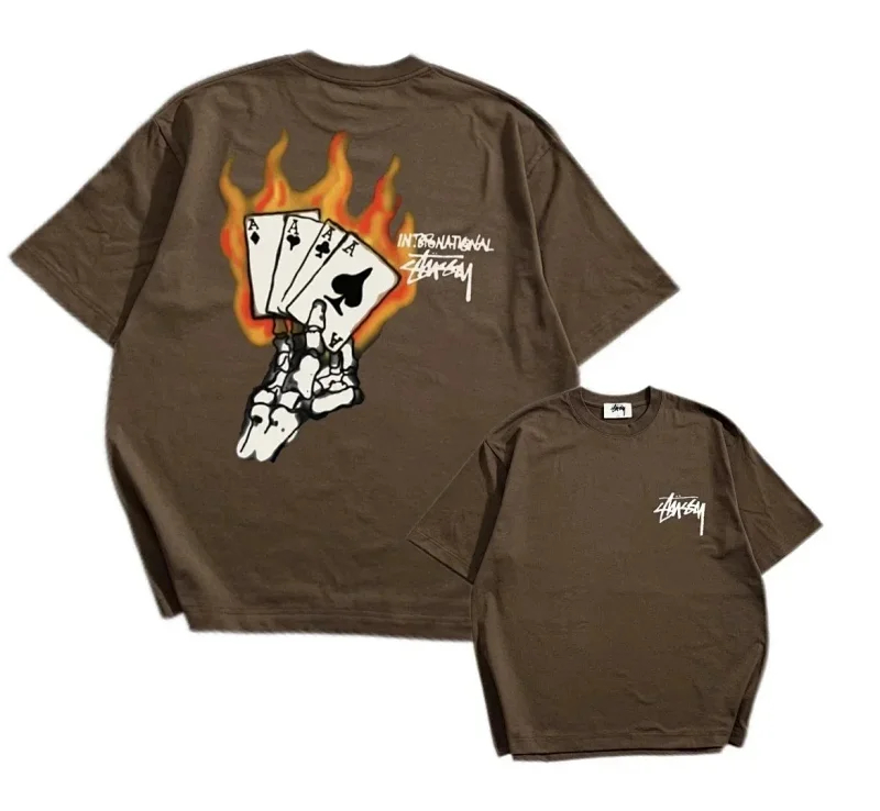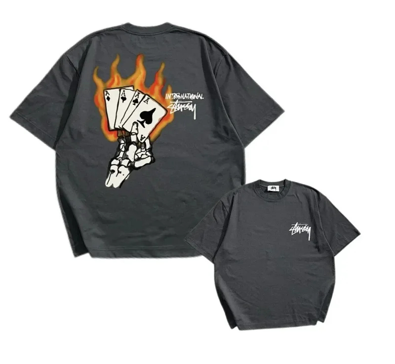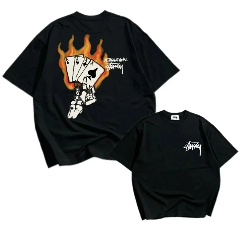 STU Summer flame poker print casual couple short-sleeved T-shirt(32 styles)-1877