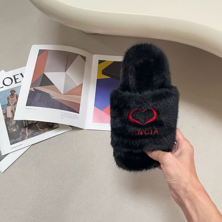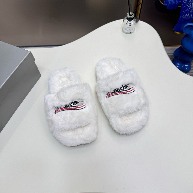 Home > Balenciaga new embroidered logo fur-lined slip-on sandals-5690
