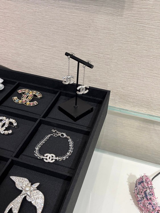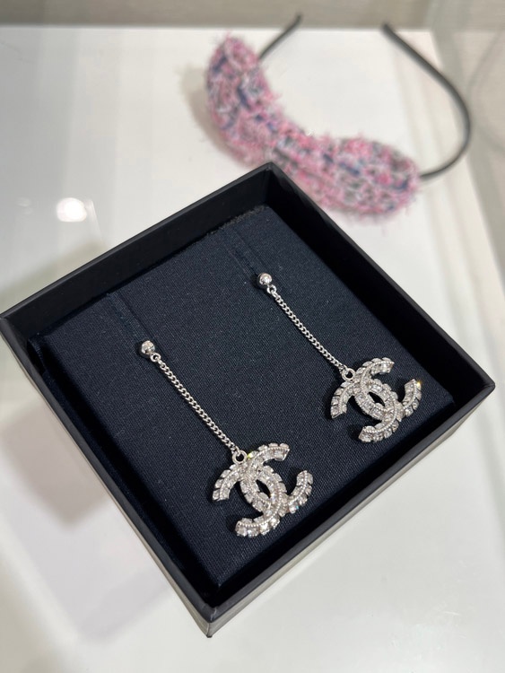 Celine double-sided diamond double C pendant long chain earrings-3902