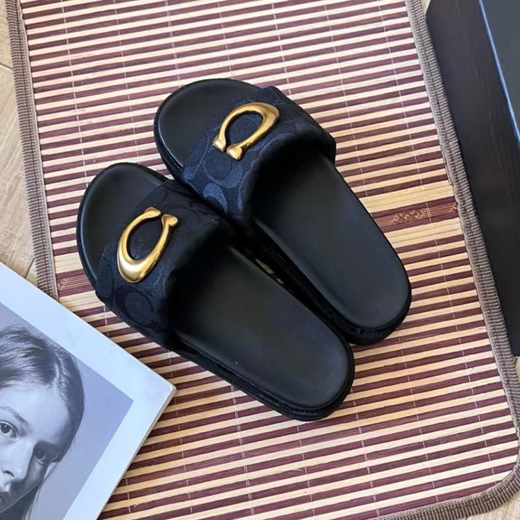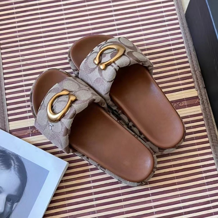 Home > Coach platform sandals with metal buckle and canvas upper-5624