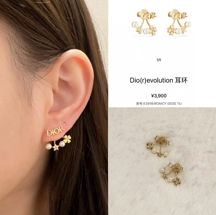 Dior gold star pearl double ball earrings-4017