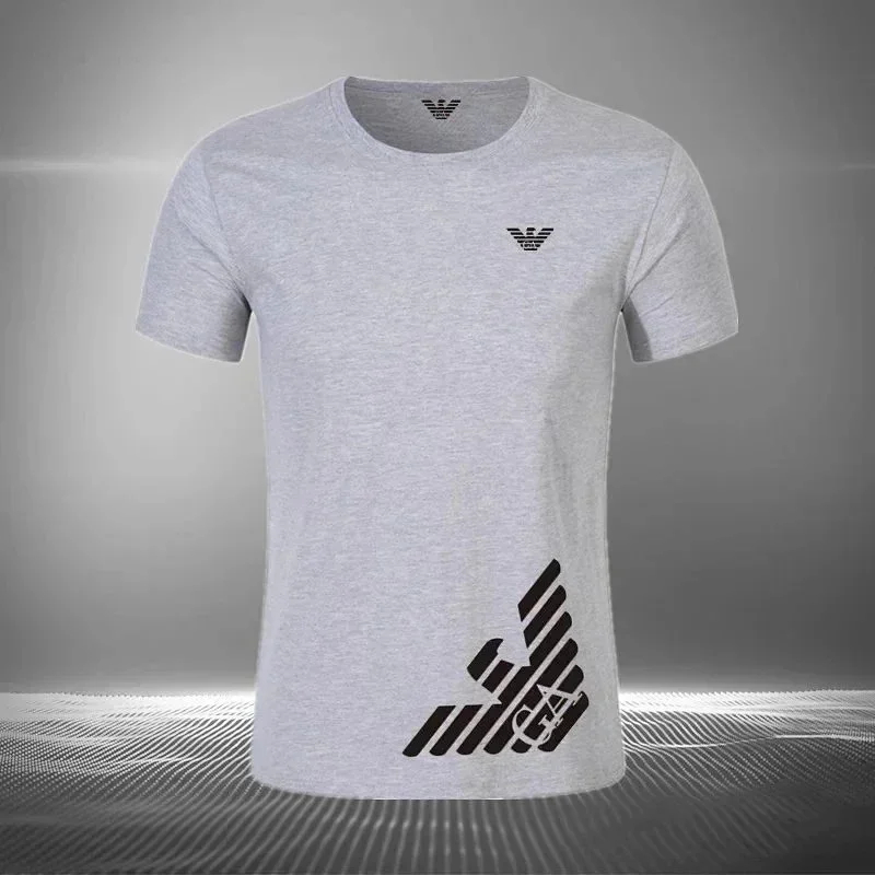 EMPORIO ARMANI EA7 Lettering Logo Solid Color Round Neck Short Sleeve T-Shirt-2831
