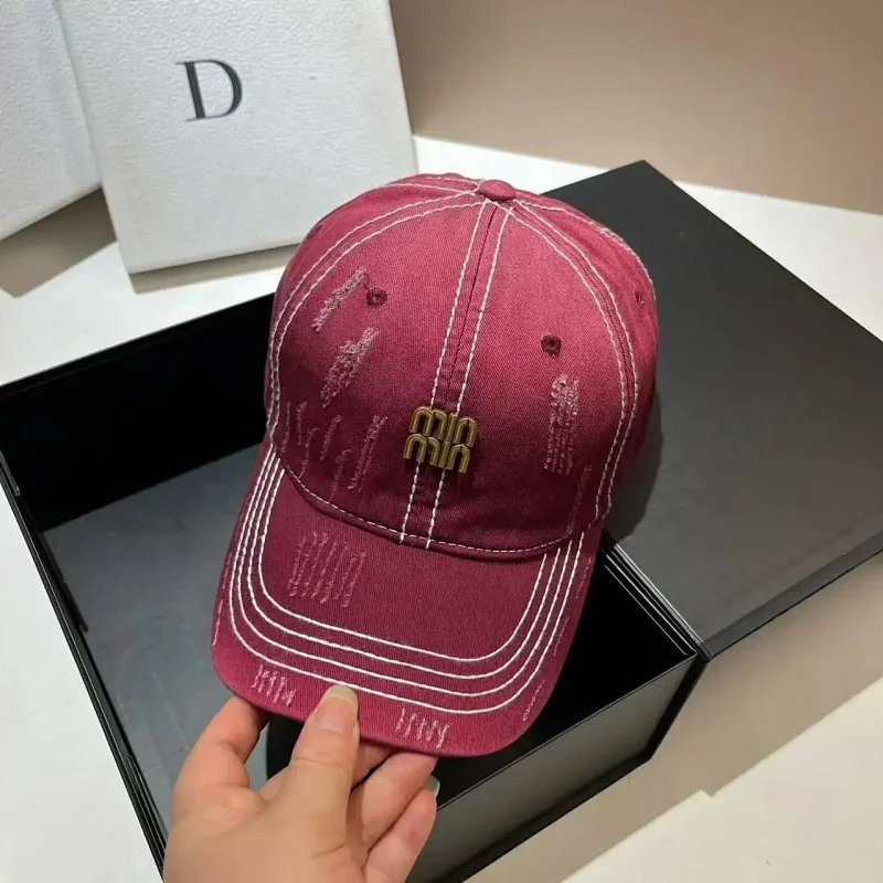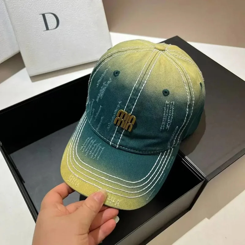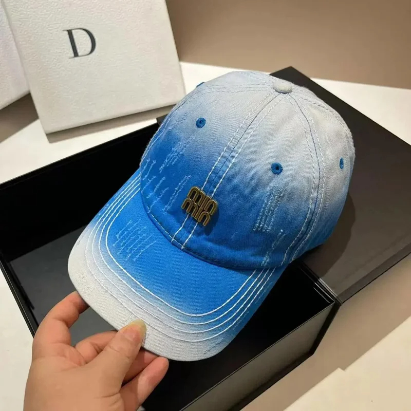 Home > Miu Miu Distressed soft top denim cotton sun protection baseball cap-2728