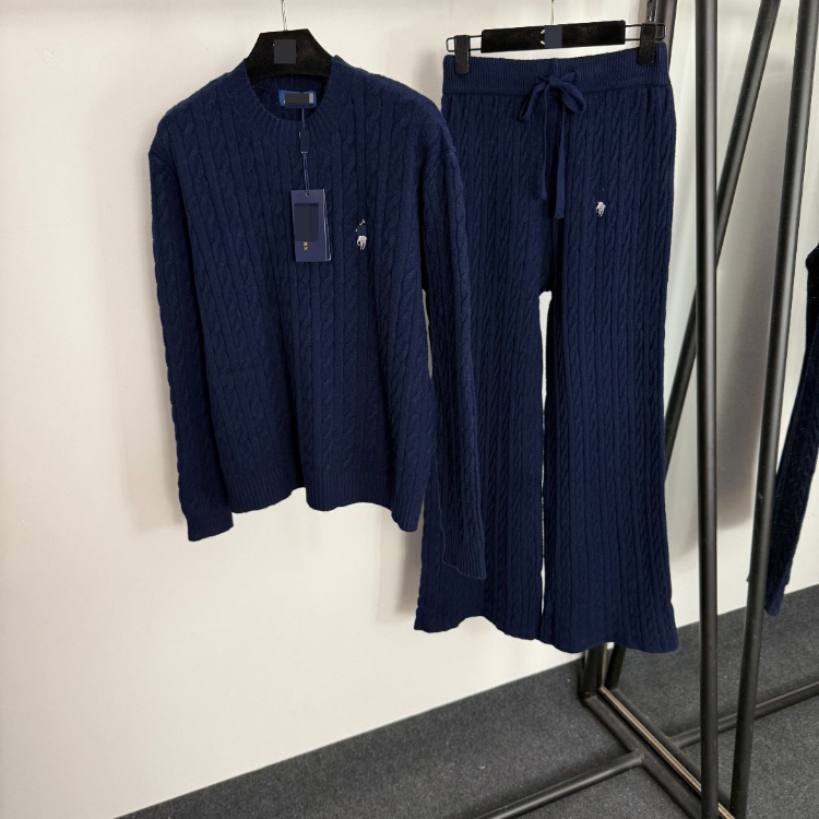 Polo Ralph Lauren embroidered cable-knit striped sweater set-5398