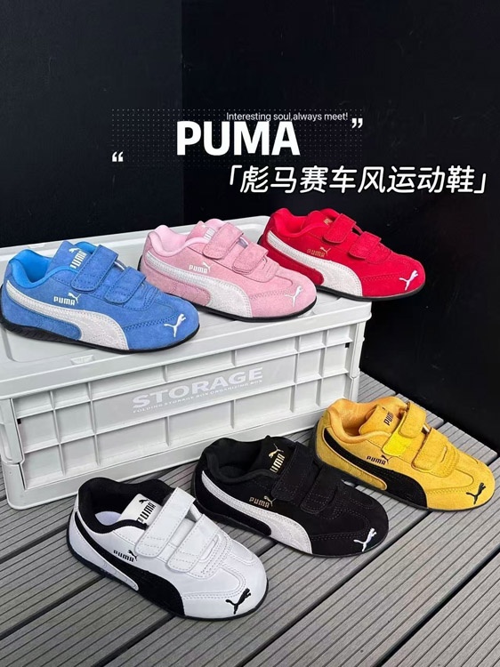 Puma speedcat OG thin-soled racing-feel lychee leather Velcro low-top children's shoes-4112