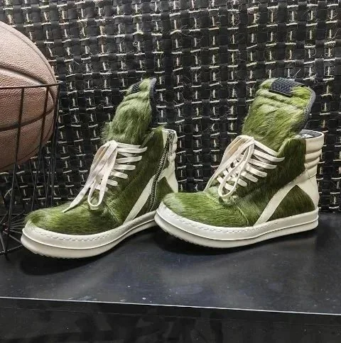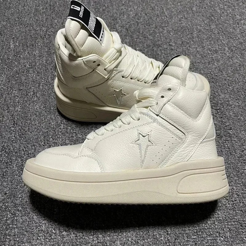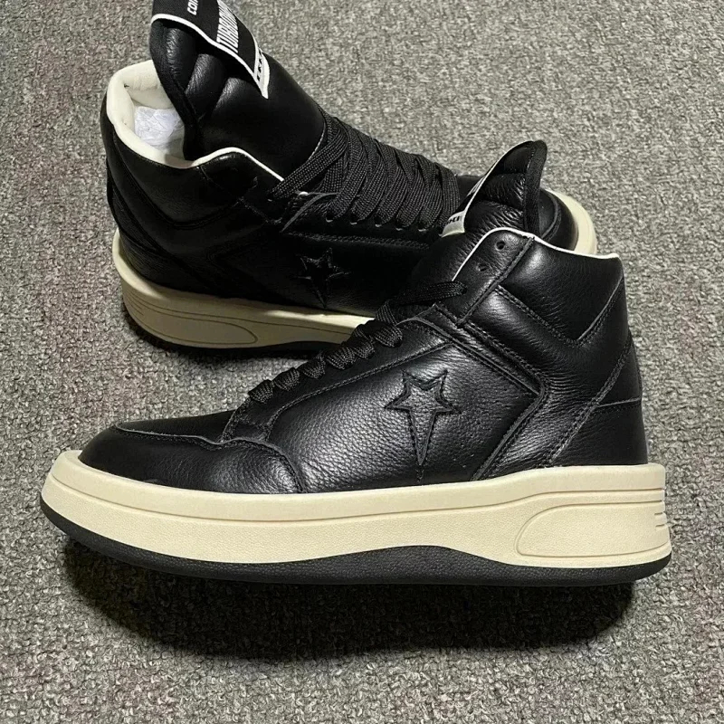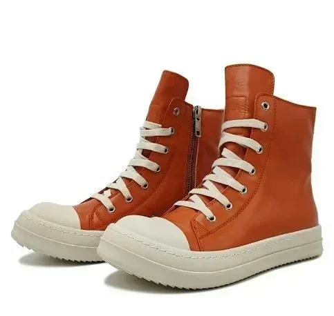 Home > RICK OWENS/RO Edfu leather semi-gloss finish high-top fashion sneakers-2945