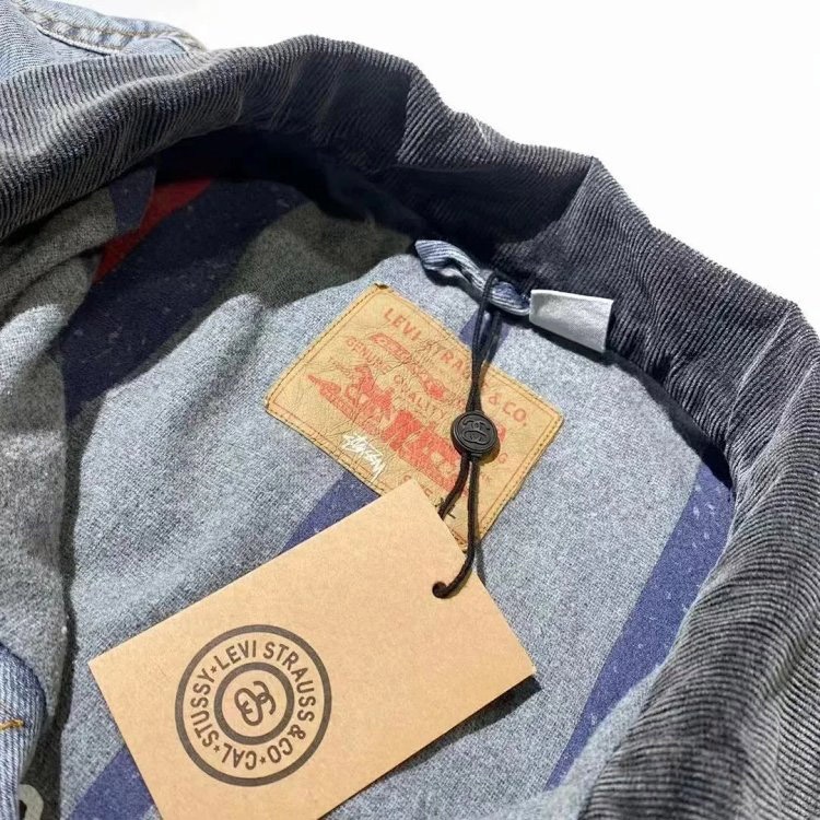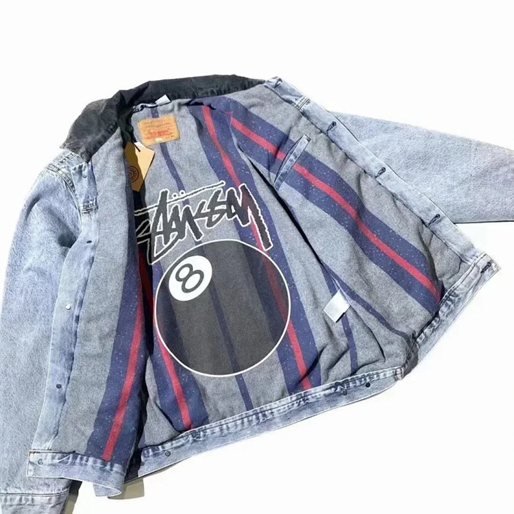 Stussy x Levi's collaboration denim jacket with embossed logo design-4800