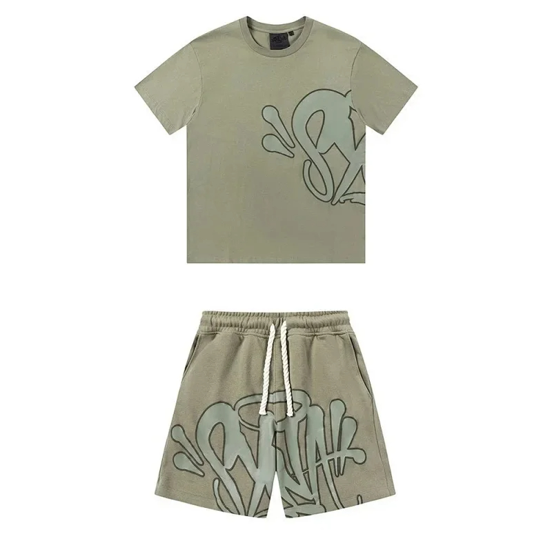 Syna World foam letter print casual short-sleeved T-shirt shorts set-2873
